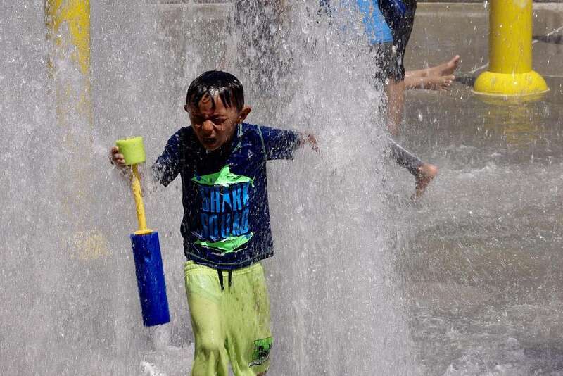 6月22日,一名儿童在美国加利福尼亚州奥兰治县的一处喷泉戏水降温。新华社发
