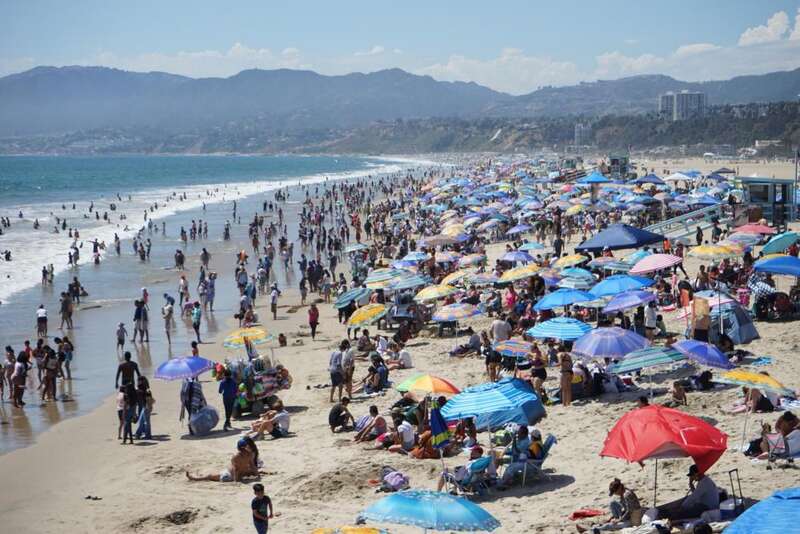 6月23日,人们在美国加利福尼亚州洛杉矶圣莫尼卡海滩休闲避暑。新华社发(曾慧摄)