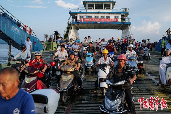 7月3日上午,连续多日的降雨不再,烈日高照,江西省九江市区开往江洲镇的轮渡前排起长队。摩托车、电动自行车、小汽车,还有徒步的行人,许多人都是为了返乡参加抗洪抢险。