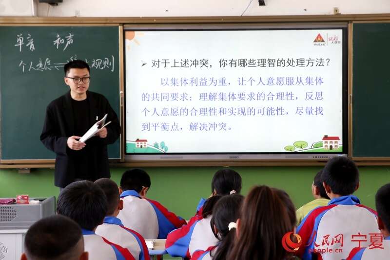 牛嘉阳老师在给同学们上课。人民网记者 穆国虎摄