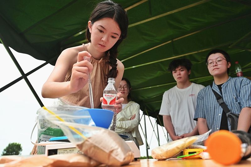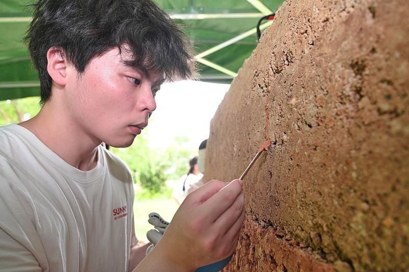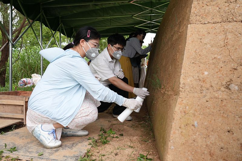 2024年7月10日,杭州,“趣卫良渚:遗址保护修复体验官活动”在良渚古城遗址开展。12名来自全国多所高校的公众体验官在工作人员的带领下,通过体验式、互动性、开放式的方式,先后参观了潮湿环境土遗址保护实验室、良渚古城遗址公园,了解遗址保护工作的日常。