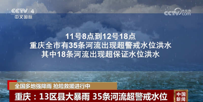 11日夜间到12日,重庆云阳、奉节等13个区县遭遇大暴雨。受降雨影响,11日8时到12日18时,重庆全市有35条河流出现超警戒水位洪水,其中18条河流出现超保证水位洪水。受嘉陵江首轮洪峰和降雨影响,截至12日18时,嘉陵江磁器口站水位达到181.41米,为今年入汛以来最高水位。当地整合街道、消防等力量,及时将周边商户、居民提前有序转移。