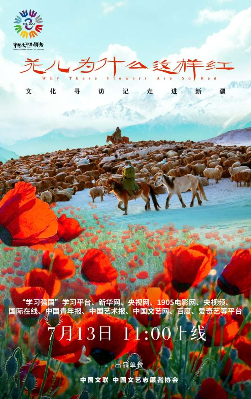 7月13日11:00,由中国文联、中国文艺志愿者协会策划拍摄的文化润疆特别节目《花儿为什么这样红:文化寻访记走进新疆》于“学习强国”学习平台、新华网、央视网、1905电影网、央视频、国际在线、中国青年报、中国艺术报、中国文艺网、百度、爱奇艺、中国文艺志愿者新媒体等多平台上线播出。