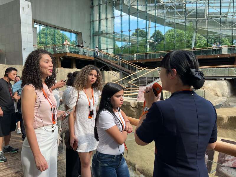 品四川美食,看蜀地美景,近距离接触大熊猫,活动期间,巴西少年记者团参观了成都金沙遗址博物馆、交子金融街、中国大熊猫保护研究中心都江堰基地、都江堰水利工程等,考察了川西音乐林盘,与李冰中学师生交流,体验了青城太极、烙画等非遗文化。