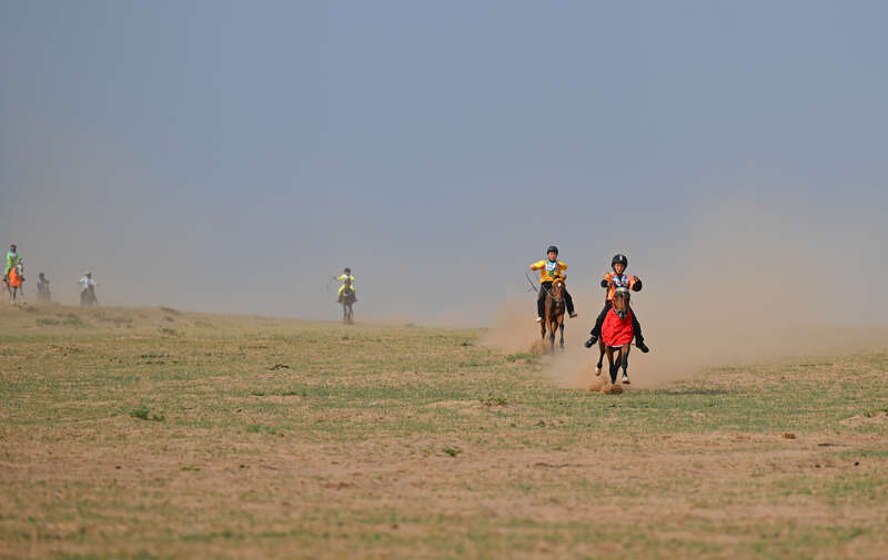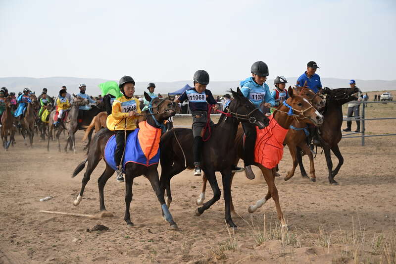 7月15日,8公里二岁马比赛开赛,少年骑手冲入赛场。中青报·中青网记者 石佳/摄