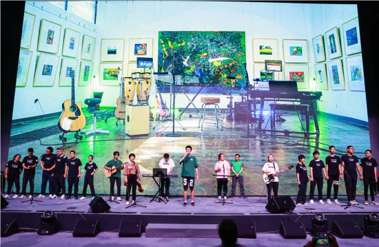 音乐会现场,一支完全由孤独症儿童组成的乐团“星光益彩天真乐团”,献上了原创歌曲《天真的星星》,引发全场喝彩,观众们打开手机闪光灯组成一片“星海”,为孩子们加油鼓劲儿。该乐团的成员们均来自中国社会福利基金会的“星光益彩”自闭症艺术疗育公益项目受益儿童,阿里公益平台公益宝贝已持续支持该公益项目10年,数千万淘宝网友不经意间,可能都曾默默守护过这些星宝们。