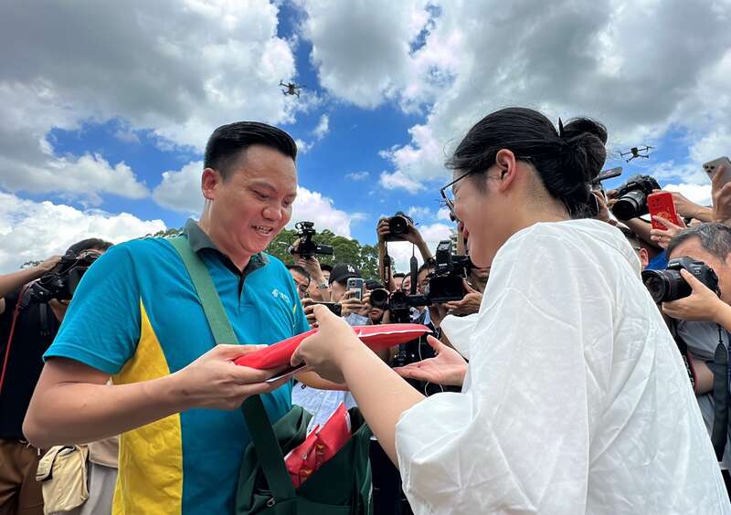 中国青年报客户端讯(中青报·中青网记者 林洁)7月15日11时40分左右,一架搭载4份高考录取通知书的无人机缓缓降落在广州市黄埔区万科山景城门前的空地处。随后,邮政员从无人机拿出高考录取通知书,与考生一一核对信息后,将其转递到学生手中。