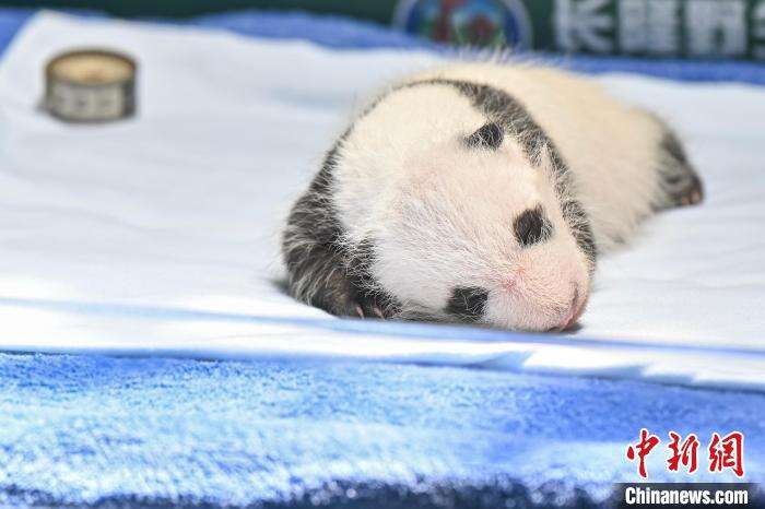 7月18日,全球唯一大熊猫三胞胎中的大姐“萌萌”产下的雌性幼崽迎来满月仪式。幼崽模样软萌可爱。中新社记者 陈骥旻 摄