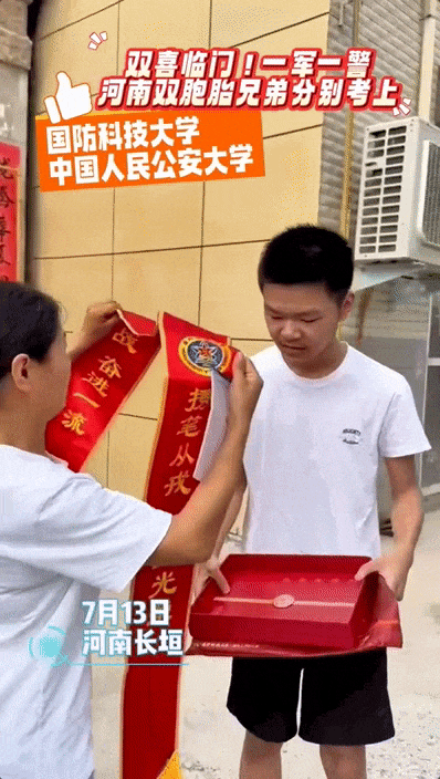 近日,河南一对双胞胎兄弟