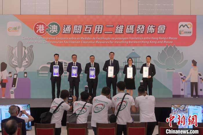 7月18日,香港特区政府入境处联同澳门特区政府举行发布会,宣布推出“港澳通关互用二维码服务”,由7月19日起,港澳合资格居民可透过各自的“港澳通关二维码”通关,不须出示实体身份证。图为人员示范以“港澳通关二维码”通关。中新网记者 陈永诺 摄