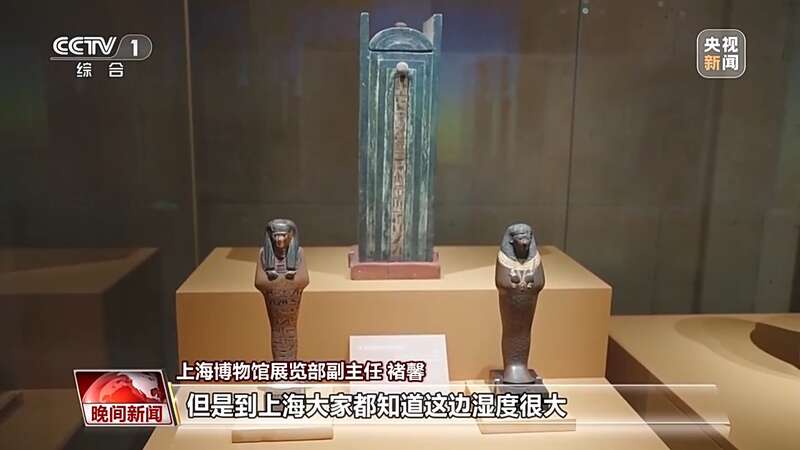 上海博物馆展览部副主任 褚馨:埃及的天气比较干燥,它保存得特别好,但是到上海大家都知道这边湿度很大,我们对它还进行了脱虫的处理,全部处理好了以后,才放到恒温恒湿的展柜当中。
