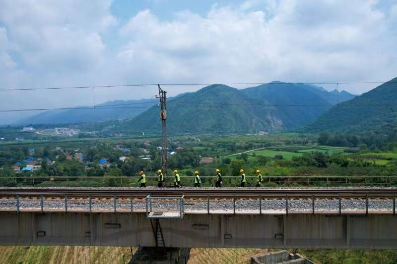 “降雨、高温天气的反复交替,对设备影响很大。”工班长程劲松一边用检查锤敲击桥面上的每一颗螺栓,一边嘱咐工友。他们今天的第一站,是宁西线西牛峪特大桥。