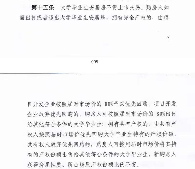“想要卖掉安居房,新的政策没有,还是按照原有政策只能卖给大学毕业五年内的大学生。但是现在的房地产行情,难有满足这一条件的大学生愿意来购买。”一名不愿意透露姓名的业主告诉澎湃新闻。