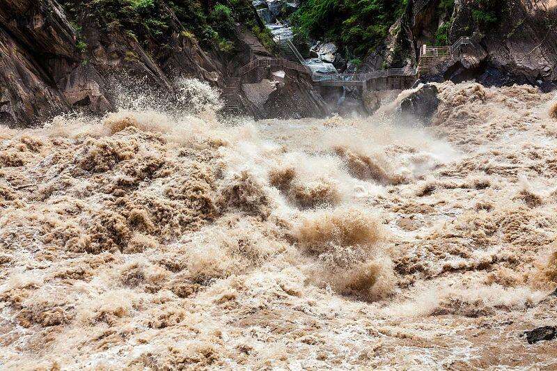 2. 听:上游突然传来像货车、重卡一样的轰鸣声,这可能是洪流携带的泥石撞击产生的。