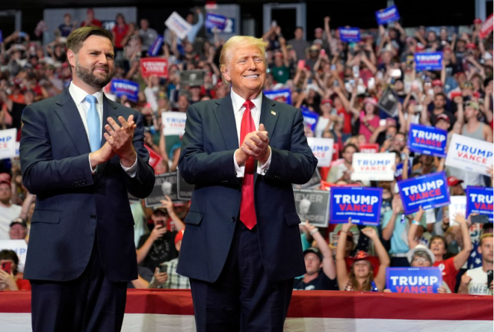 当地时间7月20日,美国前总统特朗普与其竞选搭档万斯在密歇根州参加竞选集会。这是特朗普在遭遇枪击后首次参加竞选集会,也是首次和万斯进行联合集会。