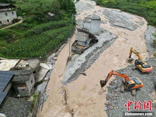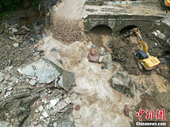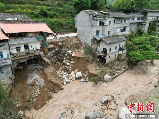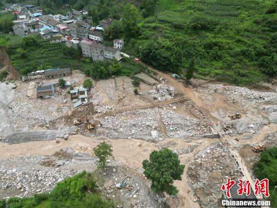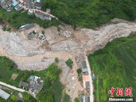 航拍新华村山洪暴雨灾害现场。