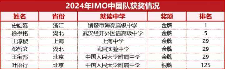 值得一提的是,史皓嘉去年入选了中国队,并在2023第64届IMO中获得满分,今年他又再次入选,并再次荣获满分。他成为继罗炜、付云皓、韦东奕之后的又一位中国队双满分选手。
