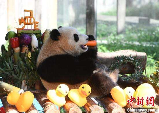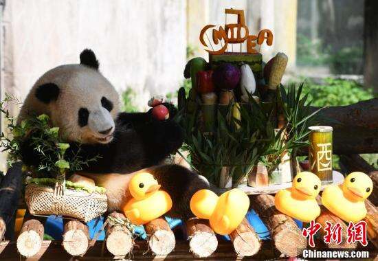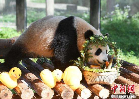 中新社记者 周毅 摄大熊猫在生日会现场。