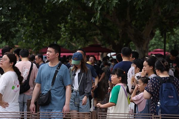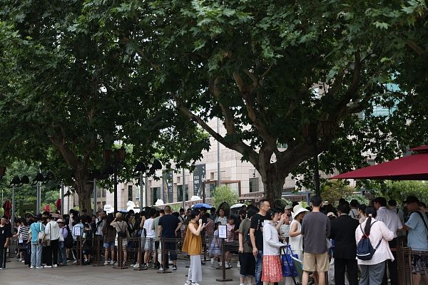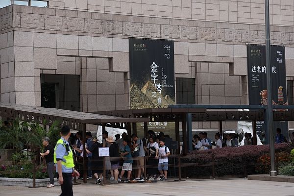 2024年7月21日,上海,“金字塔之巅:古埃及文明大展”正在火热展出,当天一早,现场看到排队观众人山人海。