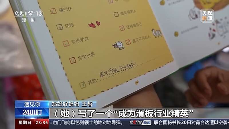 郑好好妈妈 王哲:就是无意中翻到“对你来说,成功的人生意味着什么”,她写了一个“成为滑板行业精英”,还是比较感动的。可能真的是对这个事情还是比较热爱的,所以家长就是支持就好了。