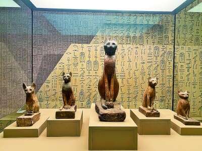 展览第二板块“萨卡拉的秘密”,聚焦2020年全球十大考古发现——萨卡拉出土的彩绘木棺、动物木乃伊及猫神庙遗址,首次系统公布埃及考古队最近10多年来在该地区自主考古取得的重大发现。