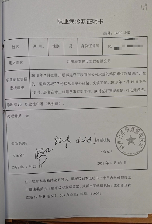 华西四院最终接受了这份破例得来的证明。2022年4月28日,3位医生共同为罗义出具了《职业病诊断证明书》,诊断罗义为“职业性中暑(热射病)”。此时,距离罗义死亡已近4年。