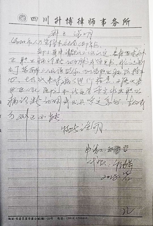 由于在电话中被轮番拒绝,在当地新冠疫情严重的2021年9月,吴洋开了检察院的介绍信,和律师一起到了成都的四川大学华西第四医院(以下简称“华西四院”)。他和当时坐诊的医生谈了很久,医生没有拒绝受理,但还是提出需用人单位出具职业史证明。