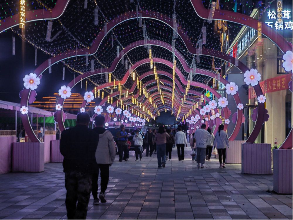 人们漫步在公园夜市