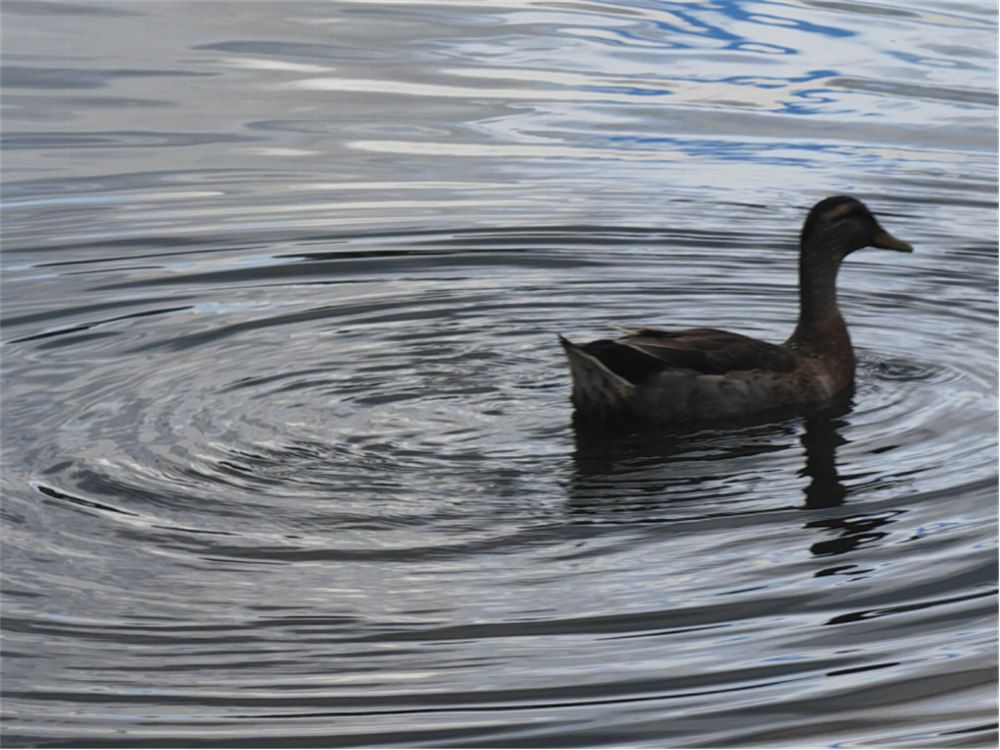 水鸭在园中河流中游行
