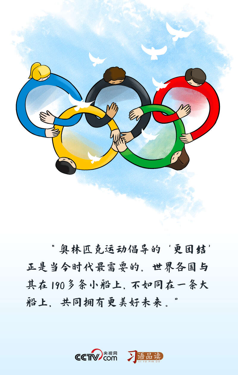 正如2022年1月25日,习近平主席在会见国际奥委会主席巴赫时强调的:“奥林匹克运动倡导的‘更团结’正是当今时代最需要的。世界各国与其在190多条小船上,不如同在一条大船上,共同拥有更美好未来。”