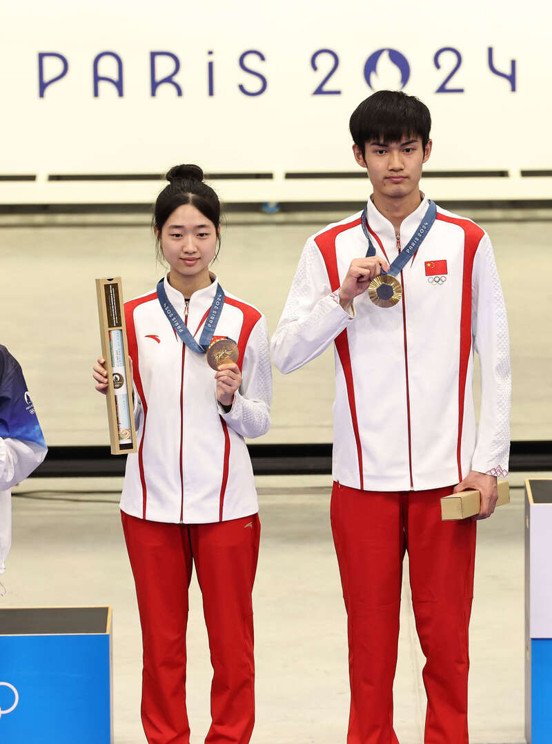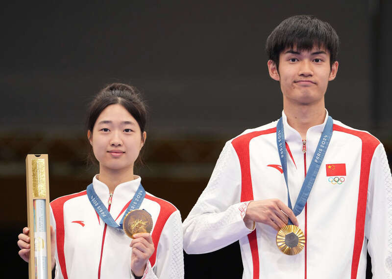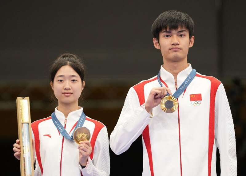 7月27日,在巴黎奥运会射击10米气步枪混合团体决赛中,“00”后中国组合黄雨婷/盛李豪摘得金牌。这是巴黎奥运会诞生的首枚金牌。