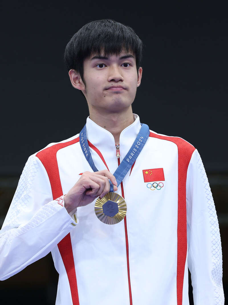 ↑中国选手盛李豪在颁奖仪式上。新华社记者 赵丁喆 摄