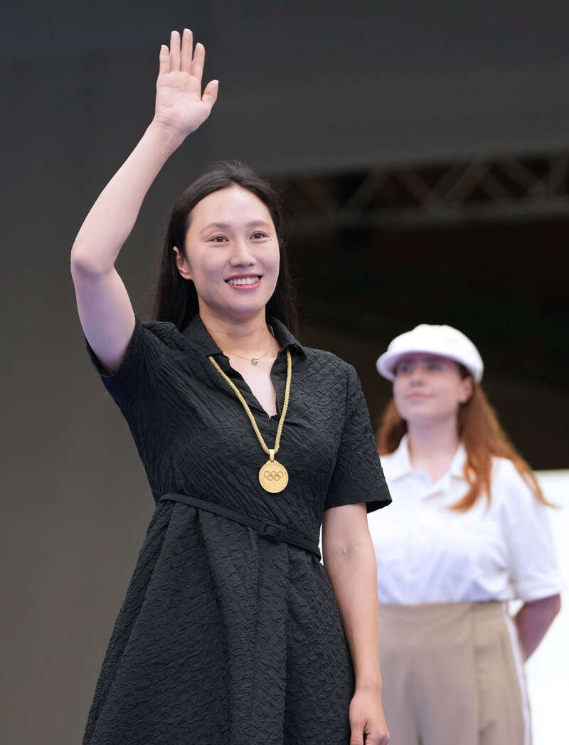↑中国选手黄雨婷在颁奖仪式上。新华社记者 赵丁喆 摄