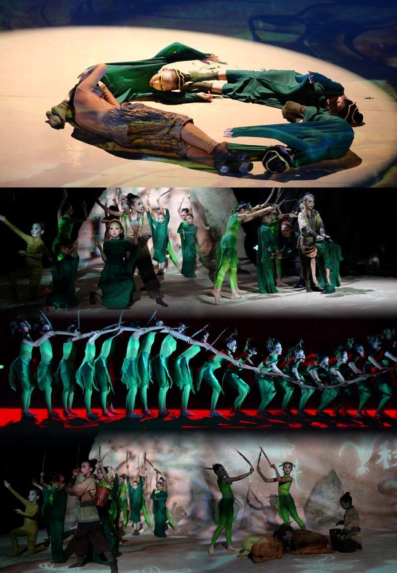 学员们通过传统乐舞、传统武术,美术线描等多种艺术形式的学习,借由神话故事中的艺术形象,结合自由开放的现代舞语言元素,让《山海经》中的奇幻异兽和神花异草都“活”了起来。
