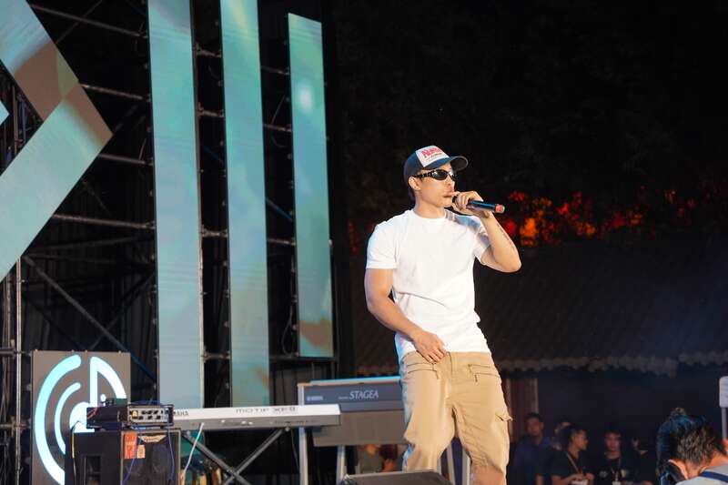 在成都生活的说唱音乐人 Jeffrey表演原创歌曲《荷处有渔》。李珺 / 摄
