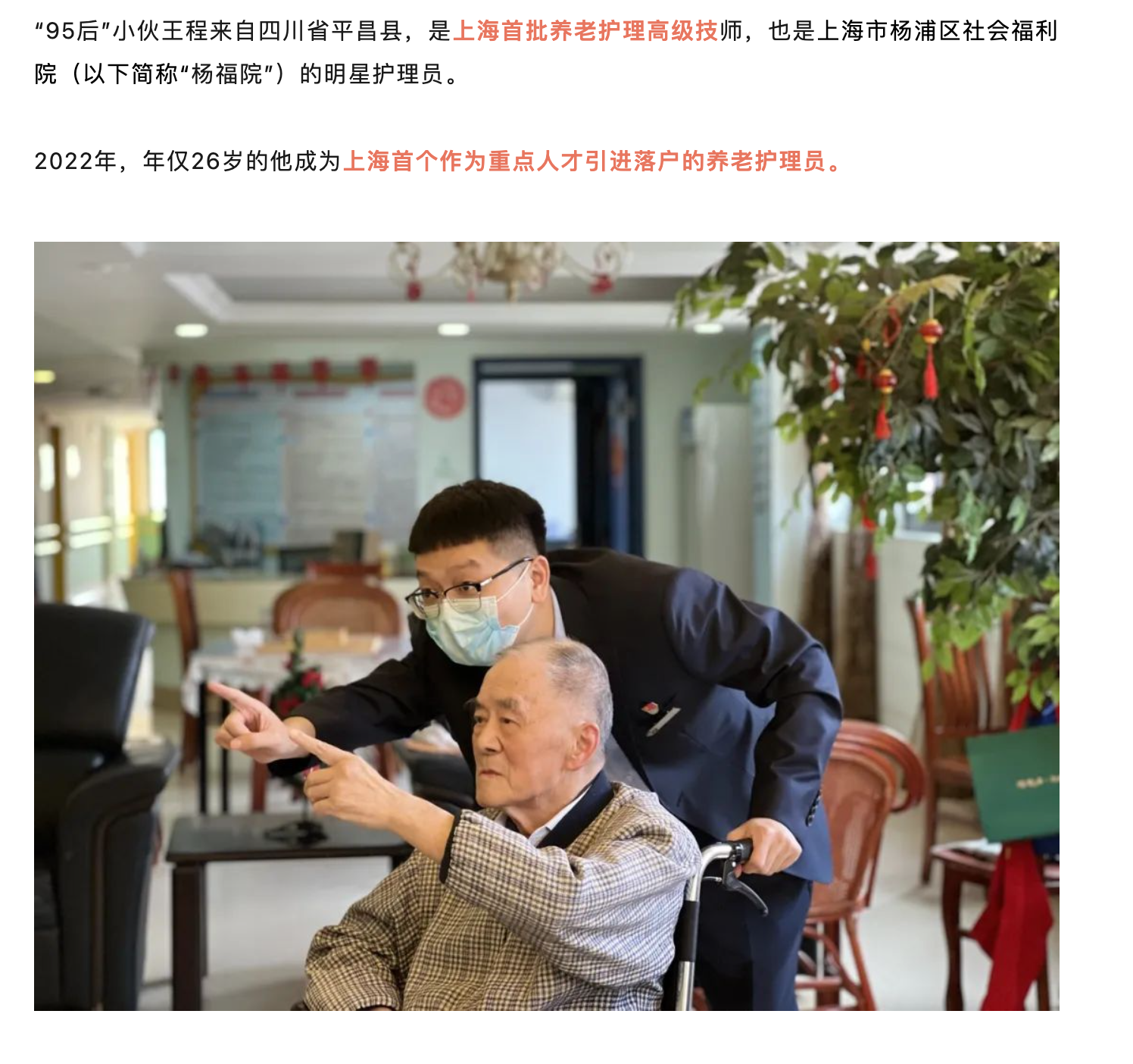 在上海市杨浦区社会福利院,有许多Z世代青年护理员,他们打破传统护理认知,用青春托起夕阳红!今天,推出明星护理员王程的故事。