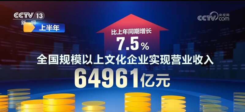 国家统计局发布数据显示,上半年,全国规模以上文化企业实现营业收入64961亿元,比上年同期增长7.5%,实现利润总额5250亿元,比上年同期增长8.9%。文化企业盈利能力稳步提升,文化新业态保持快速增长。