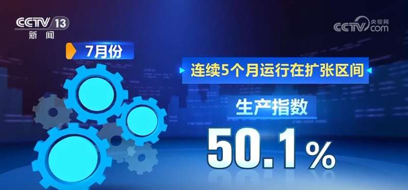 中国物流与采购联合会、国家统计局7月31日公布:7月份中国制造业采购经理指数为49.4%,运行态势持续稳定。从分项指数变化看,企业生产稳中有增,生产指数为50.1%,连续5个月运行在扩张区间。其中大型企业生产活动保持较好增长,大型企业生产指数运行在52%以上。