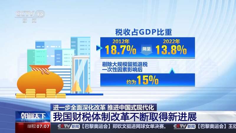 近年来,我国减税降费政策实施力度空前,税收占GDP比重从2012的18.7%降至2022年的13.8%,剔除大规模留抵退税一次性因素影响后约为15%。2023年,全国新增减税降费及退税缓费的总规模超2.2万亿元,其中超七成“落”于民营经济,助力企业减负,激发市场活力。
