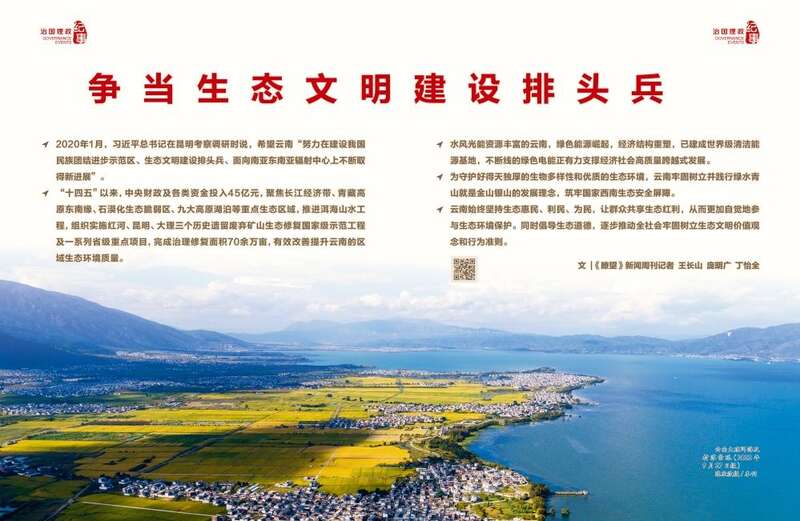 云南切实把生态文明建设摆在全局工作的突出位置,全面加强生态文明建设,开启美丽云南建设新征程。2022年5月,《云南省生态文明建设排头兵规划(2021—2025年)》发布,明确争当全国生态文明建设排头兵目标、主要任务和重大举措,切实提升生态环境治理体系和治理能力现代化水平,全面形成绿色发展方式和生活方式。