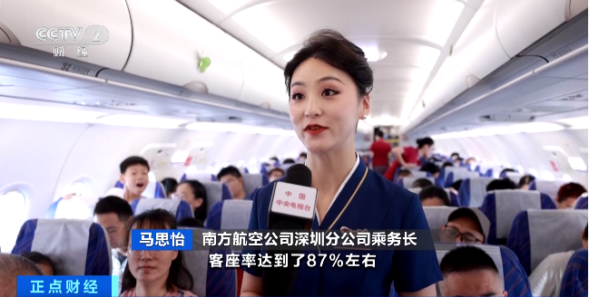 南方航空公司深圳分公司乘务长 马思怡:今天深圳-银川-阿勒泰航线的航班客座率达到了87%左右。新开这个航线,为去阿勒泰旅行的旅客提供了便利,也省去了中转的麻烦。