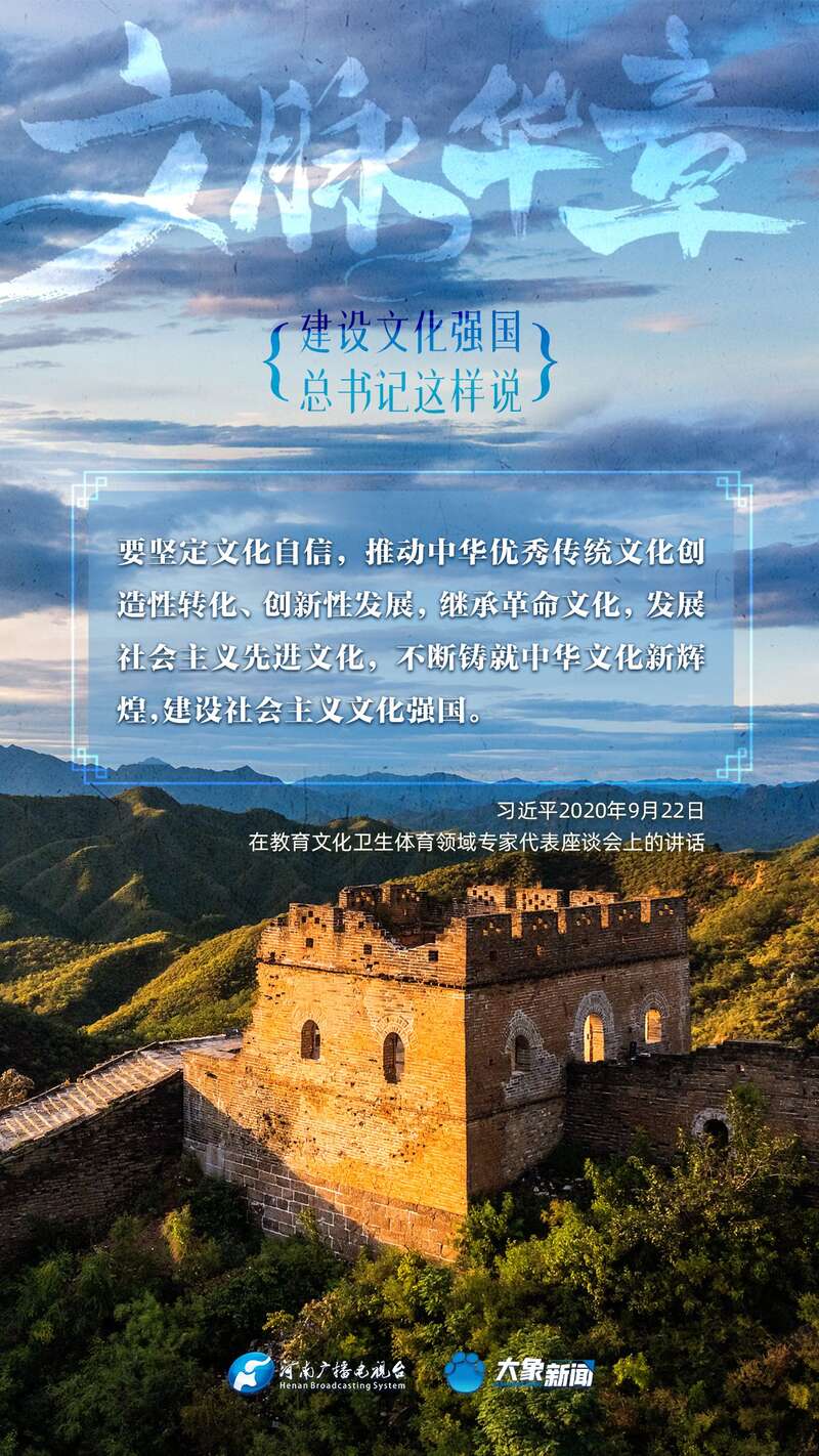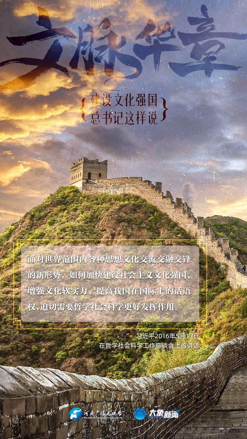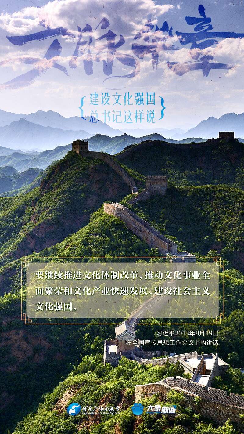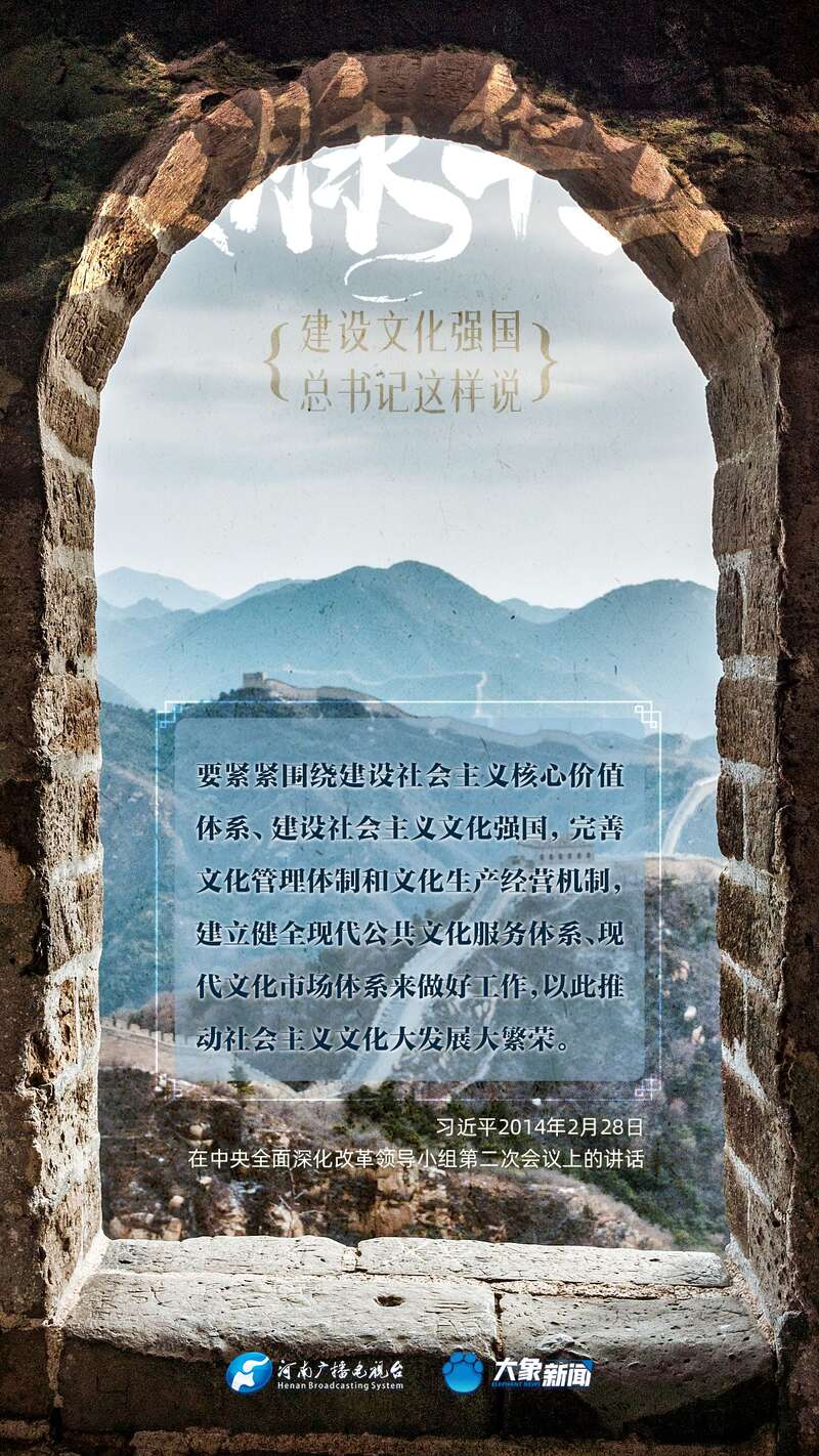 党的十八大以来,习近平总书记站在全局和战略高度,就建设社会主义文化强国提出一系列新思想新观点新论断,为我们坚定文化自信,坚持中国特色社会主义文化发展道路,提供了指引。大象新闻与您一起学习、领悟。