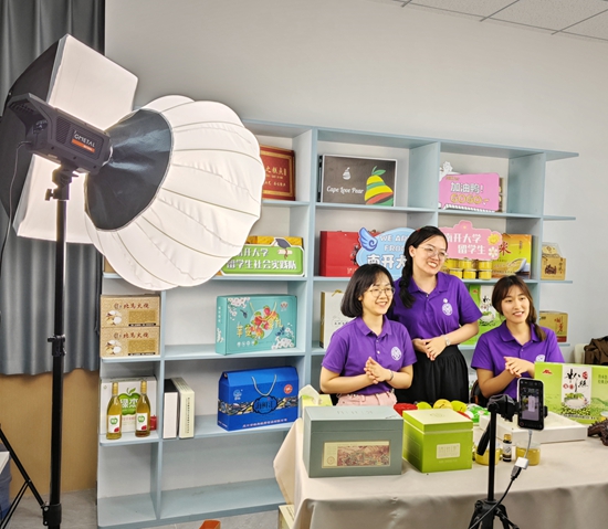 除了感受中国高新技术发展,了解各区域不同的传统文化、传统习俗,来自南开大学的6名留学生前往山东省烟台市龙口市羊沟营村,调研当地农产品种植基地,了解产业发展情况。不仅如此,他们还化身电商主播,参与直播助农,帮助当地农户销售粉丝、梨膏、茶叶等农产品。在学习“中国方案”的同时,他们也为中国乡村的发展贡献了自己的力量。