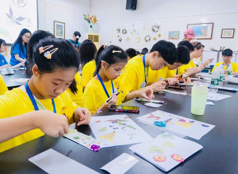 营员制作压花贺卡。陈焕平/摄