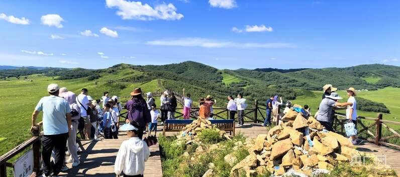 央广网赤峰8月5日消息(记者刘晓祺 见习记者邵玉琴)八月仲夏,大地飞花。采访车穿行在赤峰市克什克腾旗境内的乌兰布统草原。连绵起伏的缓坡丘陵、郁郁葱葱的白桦林、世界珍稀树种沙地云杉,与花海湿地、蓝天白云构成了一幅奇丽壮美的草原画卷。