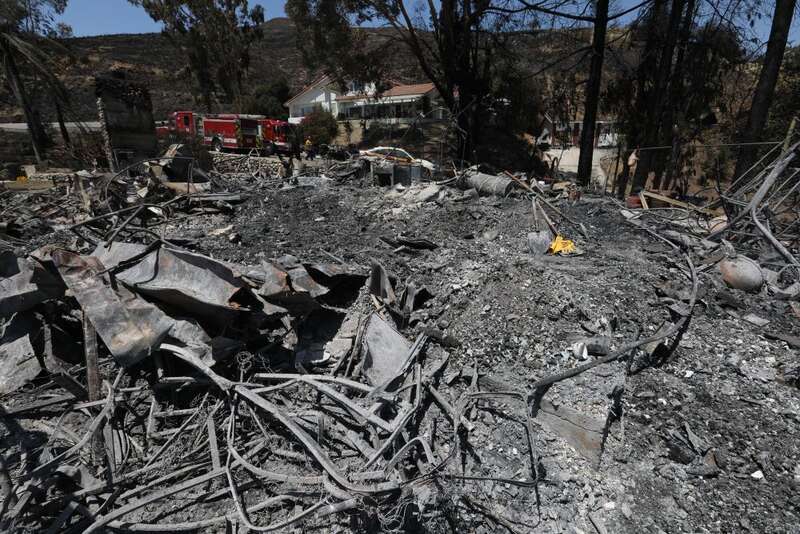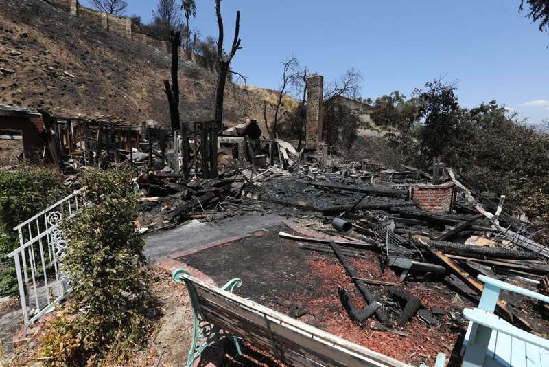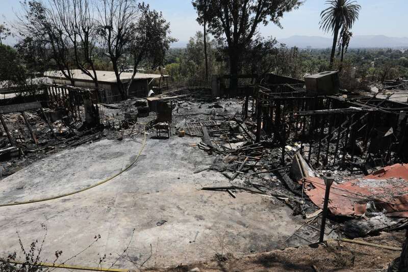 ↑这是8月6日在美国加利福尼亚州圣贝纳迪诺拍摄的山火过后的废墟。