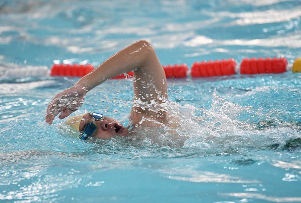 2024年8月7日,贵阳,在南明区第十届职工运动会游泳比赛现场,参赛选手认真投入比赛。