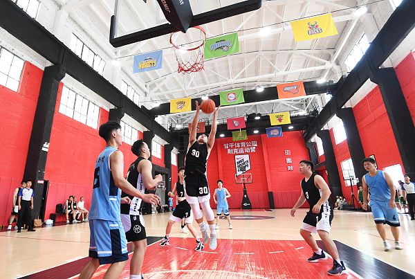 2024年8月7日,贵阳,参赛队员正在南明区第十届职工运动会篮球比赛现场激战正酣。