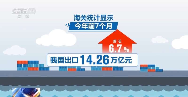 海关统计数据显示,今年前7个月,我国出口14.26万亿元,增长6.7%。