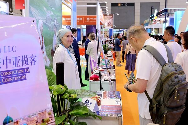 2024年8月9日,2024西安丝绸之路国际旅游博览会在西安开幕。本届博览会以“深化旅游合作·共享美好生活”为主题,旨在搭建国际交流合作平台,全面展示旅游业的最新成果与未来趋势。图为吉尔吉斯斯坦展区吸引参观者。 中新社记者 张远 摄